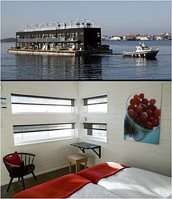瑞典 漂浮旅館:這家旅館,提供個良好的社交場所,有著美味的食物與飲料,入睡時可以聽到水花。